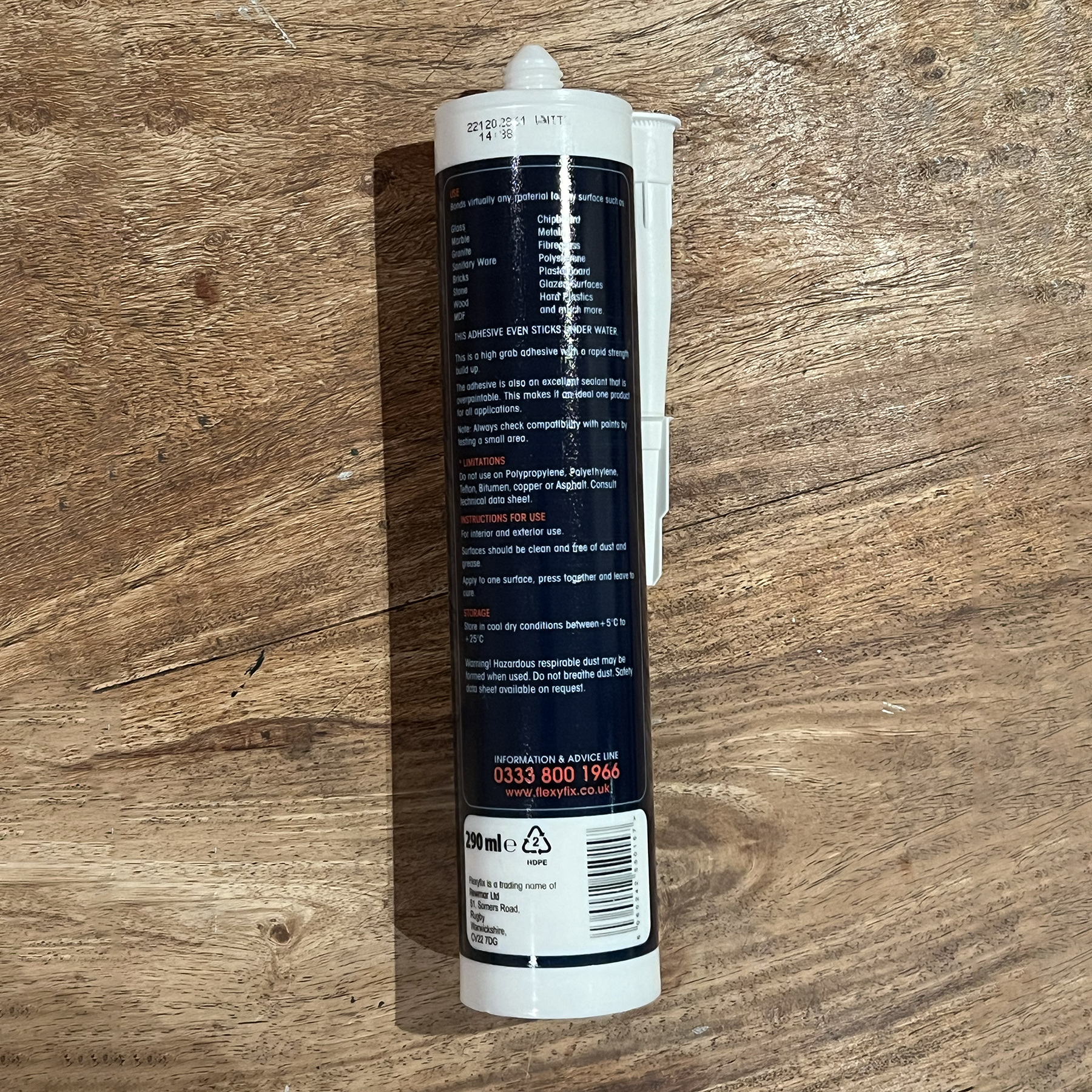 Flexy Fix is a rapid curing, high performance MS polymer adhesive, which can be used to bond a huge range of substances to countless surfaces. Clean and easy to apply, Flexy Fix is an outstanding all-purpose adhesive available at an excellent price.